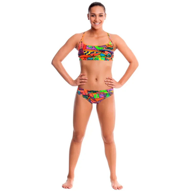 Hipster sports brief with drawcord and flat elastic waistband. Moderate leg rise and rear coverage. Sold as separates and available in sizes 8 – 14.