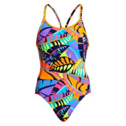 You’ll be sure to get noticed on pool deck in our strappiest one piece yet! Single strap binds that criss cross down your back with a moderately high cut leg.
