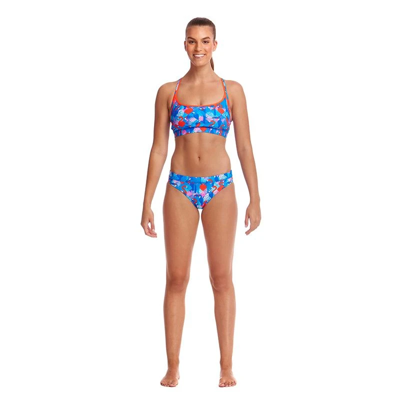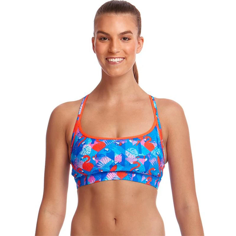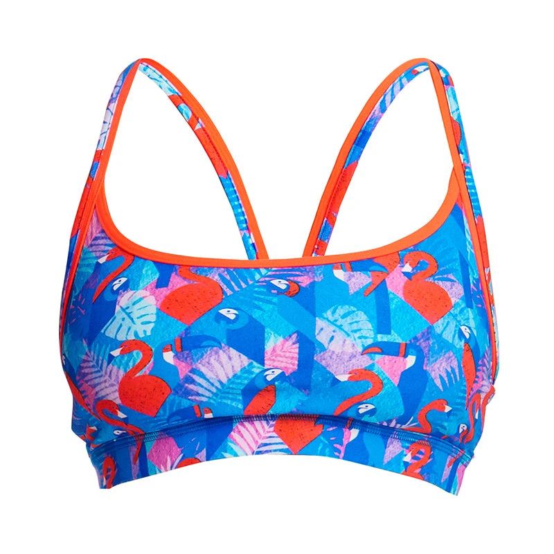 Firm fitting sports crop top with racer back and double strap bind finish with wide elastic for under bust support to give you the support you need in a sports top. Sold as separates.