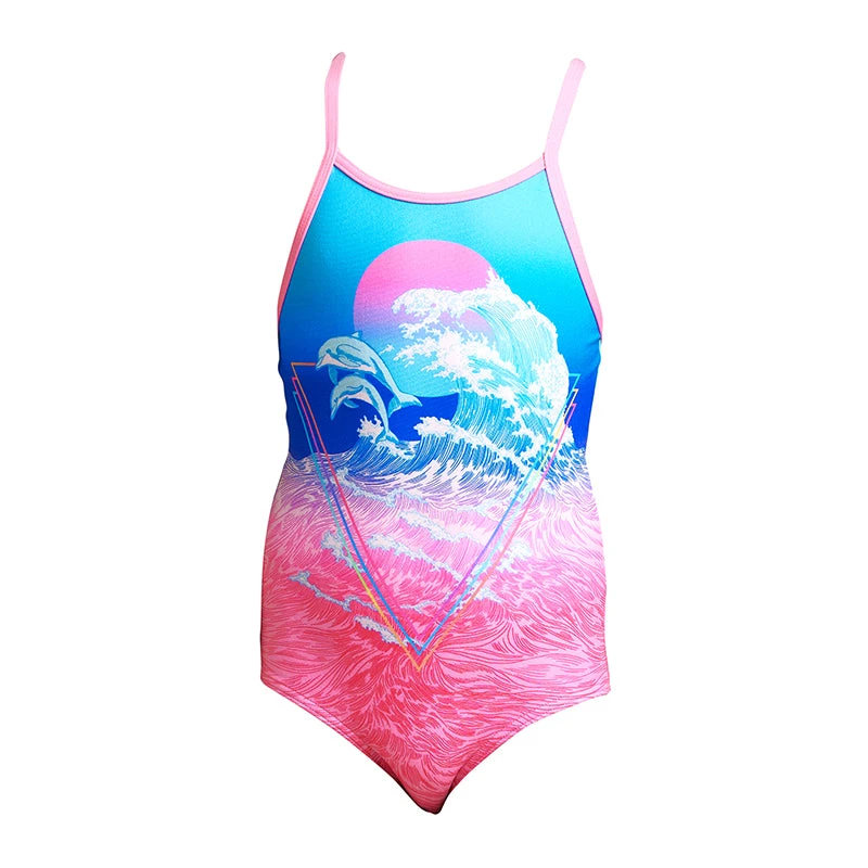 I’m the most popular Funkita one piece for little swimmers offering a full back and low leg for complete coverage.