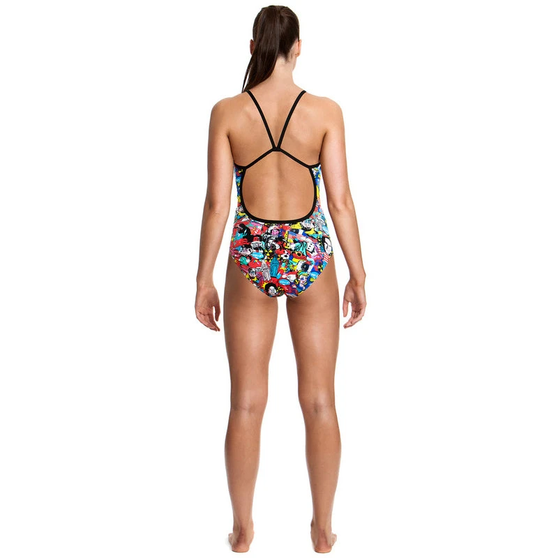 Single strap one piece with strappy V shaped back. Excellent durability and freedom of movement with single bind finish and an open back that will flatter your sporty shape. With full front lining, this is the perfect style for those long hours of training in the pool. Available in sizes 8 – 16.