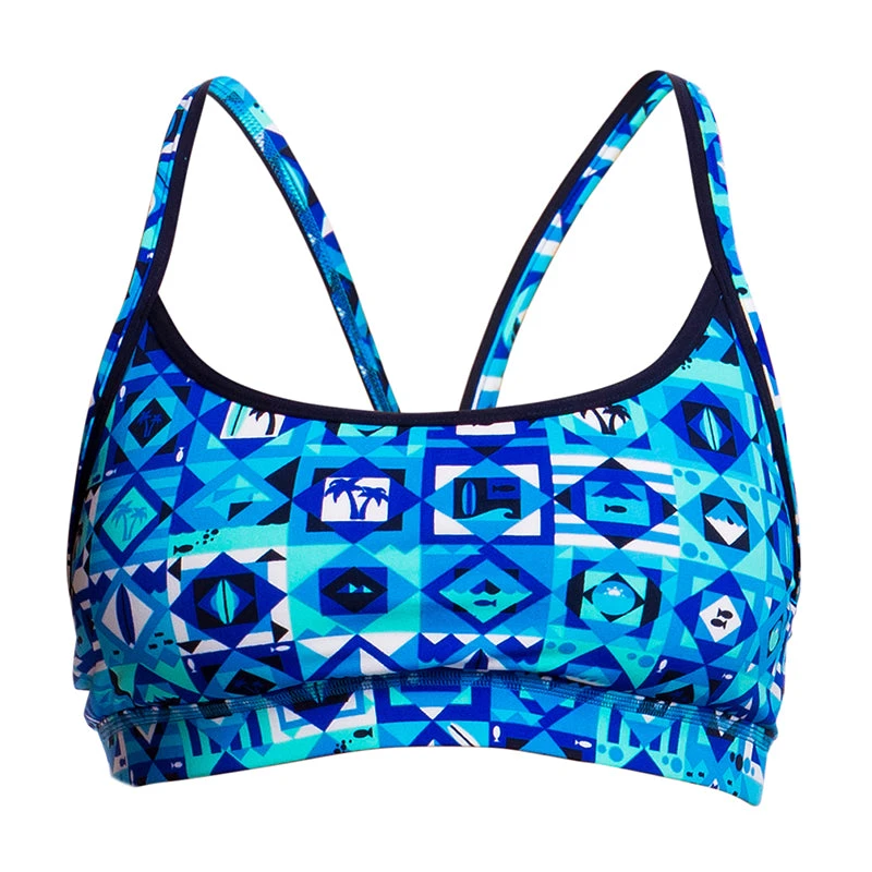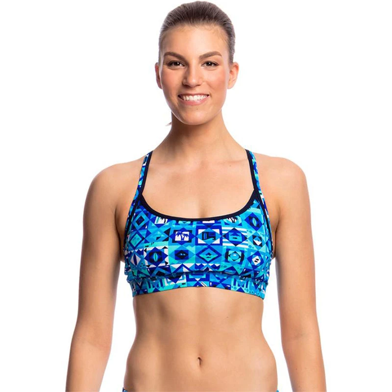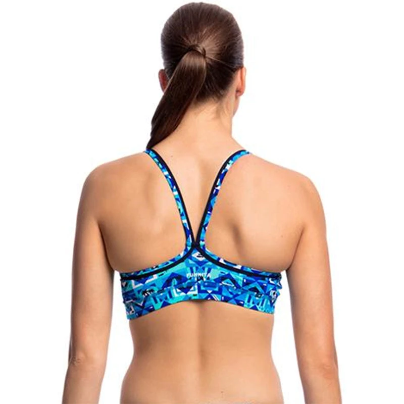 Firm fitting sports crop top with racer back and double strap bind finish with wide elastic for under bust support to give you the support you need in a sports top. Sold as separates.