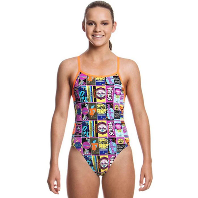 A style that offers the freedom of single bind straps and an open back that will flatter your sporty shape. Front lining only with contrast piping to shape the leg. Perfect for those long hours of training in the pool.