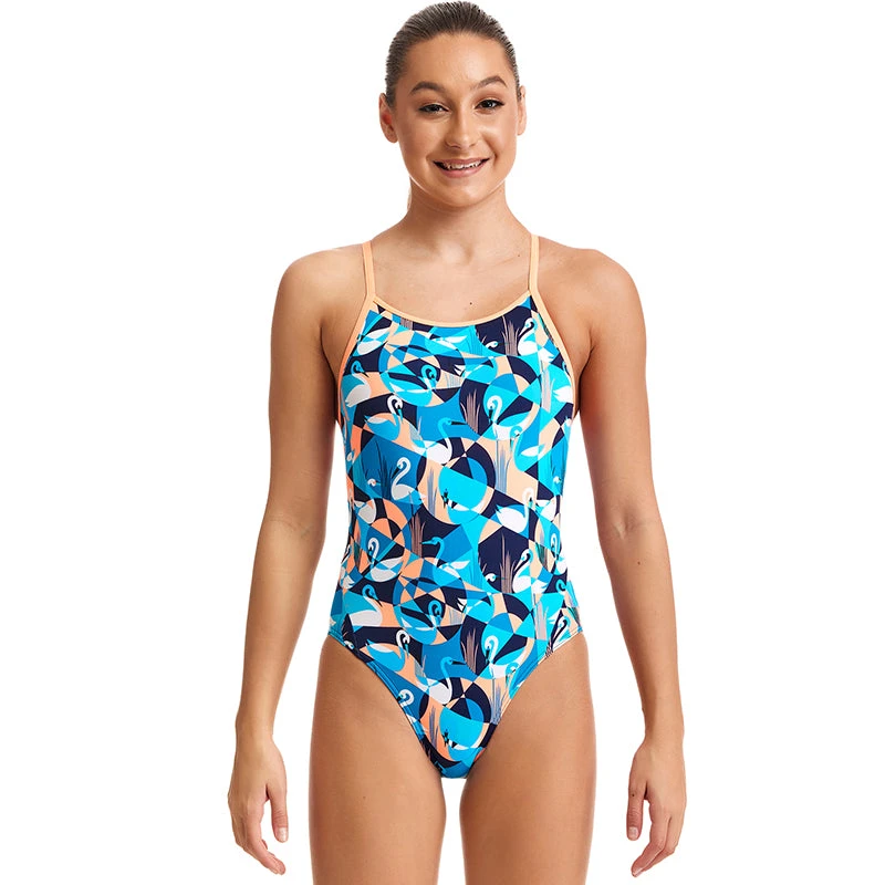 - Our most popular one piece with fabric panels across the back for a secure fit and comfy single bind shoulder straps. ECO C-INFINITY is 100% chlorine resistant and gives new life to discarded plastic bottles.