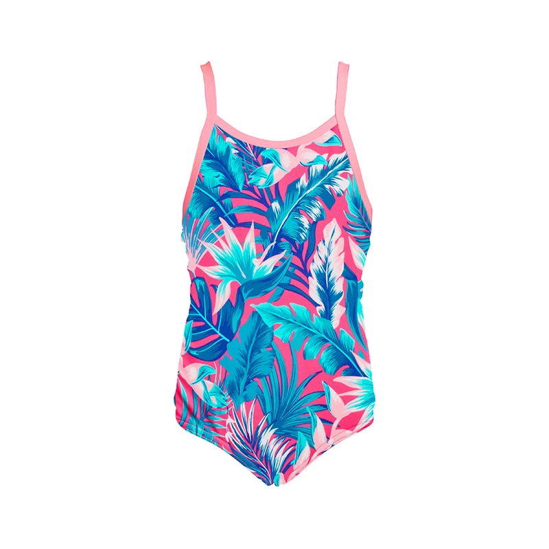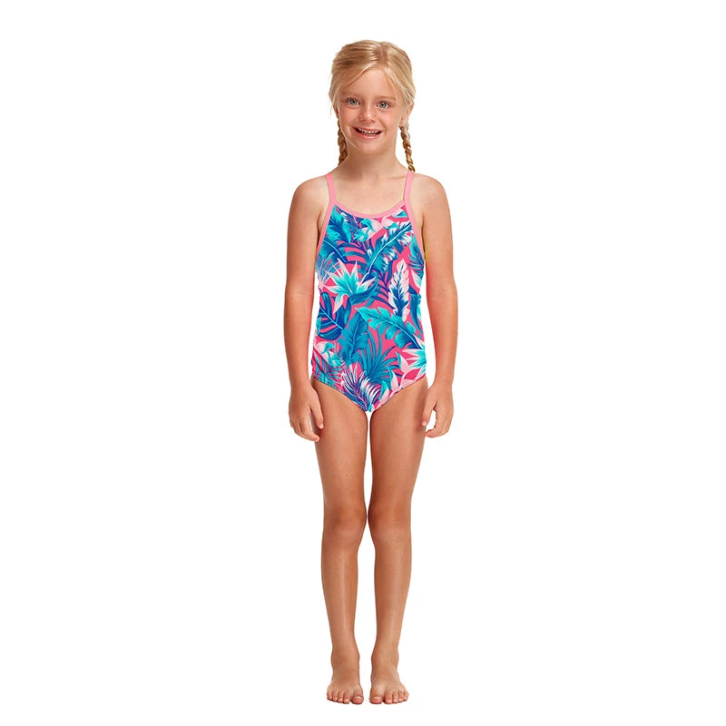 I’m the most popular Funkita one piece for little swimmers offering a full back and low leg for complete coverage.Â